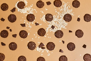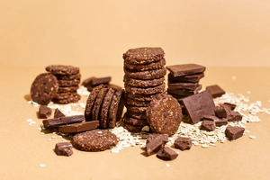 Ingredients: Gluten-free oat flakes (19%), eggs, vegetable oils (coconut, rapeseed), chocolate chips (9%) (cocoa paste, sugar, emulsifier soya lecithin, natural vanilla flavouring), rice flour, pea protein, cane sugar, cocoa powder (3%), tapioca starch, gluten-free oat flour (2%), almond flour, coconut sugar, psyllium husk powder, antioxidant rosemary extract, inulin, natural vanilla flavouring, raising agent: sodium bicarbonate, salt. Nutritional values per 100 g: Energy 1984 kJ / 493 kcal, fat 26.6 g, of which saturates 14.6 g, carbohydrates 42.8 g, of which sugars 15.6 g, fibre 9.1 g, protein 16 g, salt 0.3 g GLUTEN FREE With protein, fibre, and rich chocolate chips, these oat cookies deliver a wholesome crunch and just the right touch of sweetness. Made with gluten-free oats and plant-powered ingredients, they offer a lighter way to enjoy classic chocolate indulgence — a better choice for everyday snacking that’s balanced, satisfying, and naturally full of goodness. |