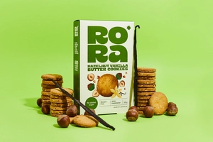 Ingredients: tapioca starch, lactose-free butter (20%), eggs, hazelnut pieces (10%), rice flour, sweetener maltitol (7%), corn flour, almond flour, chickpea flour, psyllium husk powder, natural vanilla flavouring, raising agent baking soda, antioxidant rosemary extract Nutritional value per 100 g: Energy 2358 kJ/575 kcal, fat 35.4 g, of which saturates 13.4 g, carbohydrates 52.6 g, of which sugars 3.1 g, fibre 4.8 g, protein 9.1 g, salt 0.4 g WITH NO ADDED SUGARS Crisp butter cookies made with crunchy hazelnut pieces and natural vanilla, with no added sugar. Balanced with lactose-free butter for a soft, melt-in-the-mouth texture — a better choice for everyday snacking — nutty, delicate, and full of feel-good goodness. |