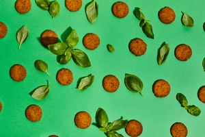 Ingredients: flour mix (gluten free) (corn starch, rice flour, vegetable fibres (psyllium, bamboo), whole grain rice flour, lentil flour, dextrose, thickener E464, salt), cheese (23%) (milk, starter culture, firming agent calcium chloride), vegetable oils (coconut, rapeseed), eggs, pea protein (protein), tapioca starch, tomato-basil seasoning mix (1.6%) (tomatoes 26%, basil 8%, spices, maltodextrin, paprika extract), psyllium husk powder, antioxidant, rosemary extract, tomato powder (0.9%), natural cheese flavouring, hot paprika powder, dried basil (0.2%), salt Nutritional value per 100 g: Energy 2367 kJ/568 kcal, fat 37.2 g, of which saturates 22.7 g, carbohydrates 38.2 g, of which sugars 2.5 g, fibre 3.9 g, protein 18.4 g, salt 2.1 g GLUTEN FREE! Protein-rich cheese cookies, inspired by Mediterranean flavours — combining real cheese with fragrant basil and tomato seasoning for a crunchy, savoury bite. Enriched with pea protein and fibre, they deliver a bold taste with balanced nutrition — a smart choice for mindful snacking at any time of day. |
