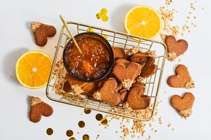 A box of love and a piece of the heart. Two hand-cut gingerbread hearts, connected by an aromatic orange filling, dipped in chocolate glaze. Fragrant, golden brown and thinly crispy. Classic Christmas spices meet sunny citrus sweetness, making these cookies both a treat and a decoration for the holiday table. Will create a feeling of love and warmth during the holidays. A nice gift for the holidays. |